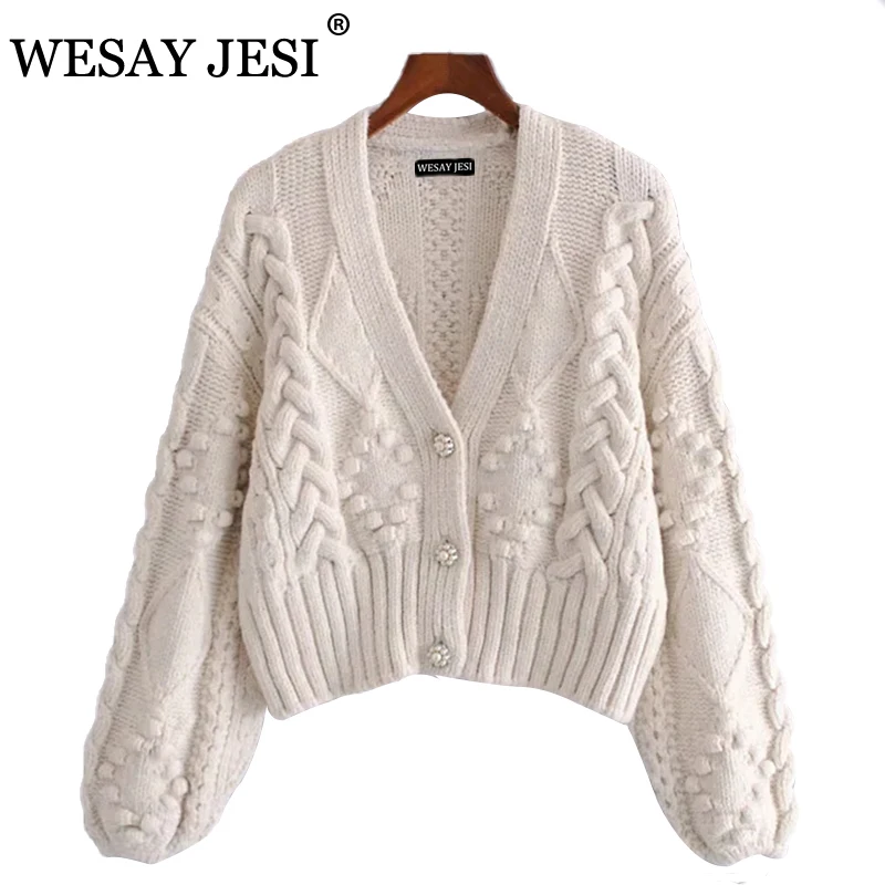 Name: Westay jeli-cárdigan de punto para mujer, suéter grueso, suelto, de manga linterna, botón de perla, corto, dulce y estilo perezoso, primavera 2021
